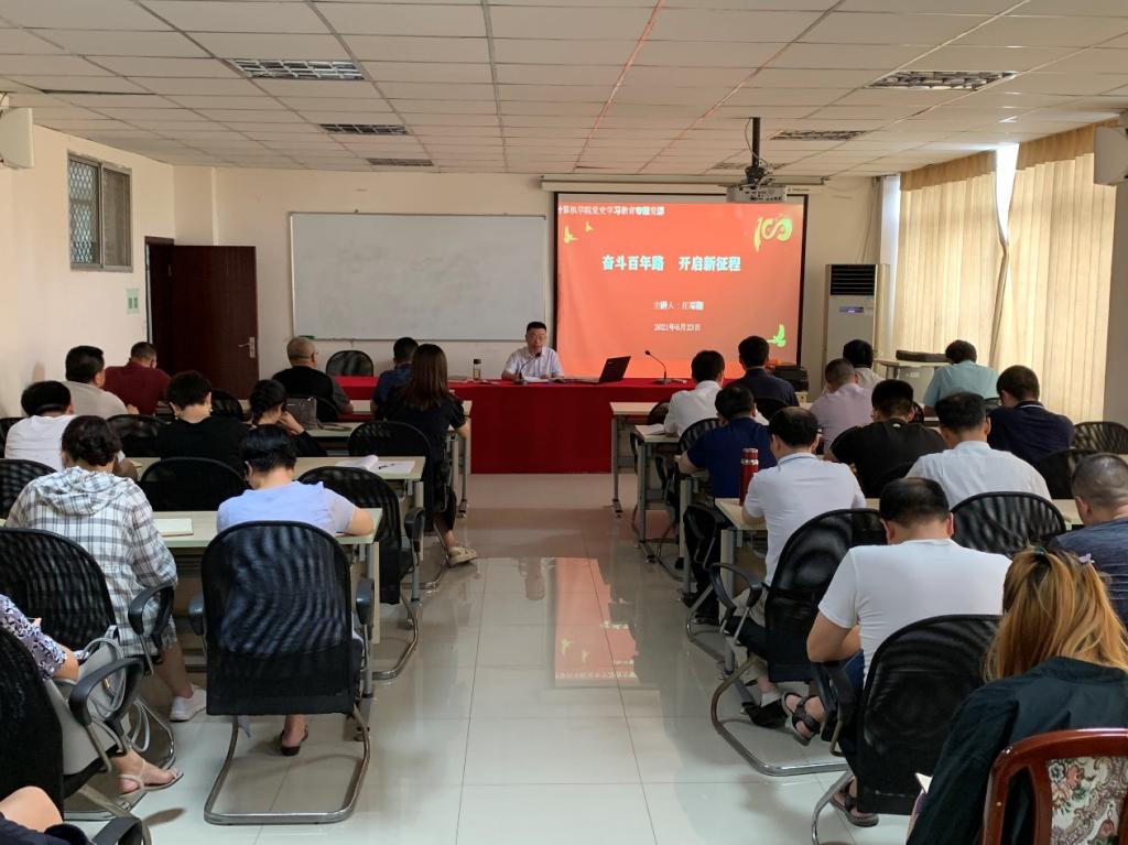 本网讯 刘芳 摄影报道 6月23日下午,beat365英国官方网站党委召开党史学习教育专题党课报告会暨中心组第七次集中学习会,党委书记庄瑞刚同志以《奋斗百年史 开启新征程》为题,为beat365英国官方网站全体党员教师在1308 会议室作专题党课。学校宣传部理论教育科副科长刘志飞同志和张若石同志莅临指导。