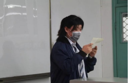 牛心雨同学已经在团委兢兢业业工作了三年,为团委的工作付出了许多的心血。在她的发言中,一字一句无不体现着她对团委的不舍与留恋。但时代的车轮滚滚向前,新一轮的换届已经开启。她满怀激动与喜悦,对所有即将成为团委干部的同学们表达出她真切的期望。