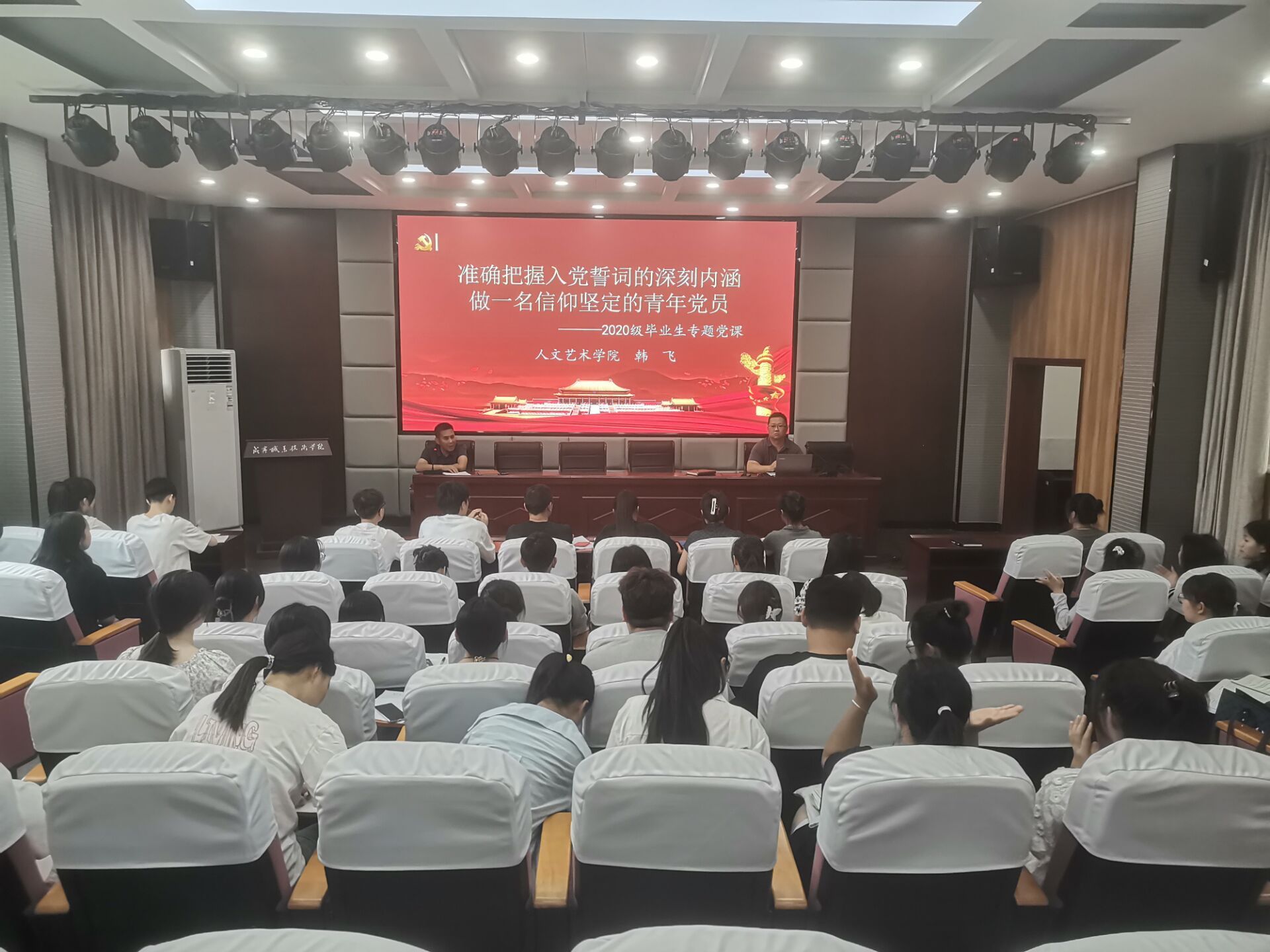 为深入学习贯彻党的二十大精神,扎实做好毕业生党员离校前的教育工作,6月15日下午,beat365唯一官网党总支书记韩飞在教育实训中心201报告厅为学院20级毕业生党员讲了一堂题为“准确把握入党誓词的深刻内涵 做一名信仰坚定的青年党员”的专题党课。
