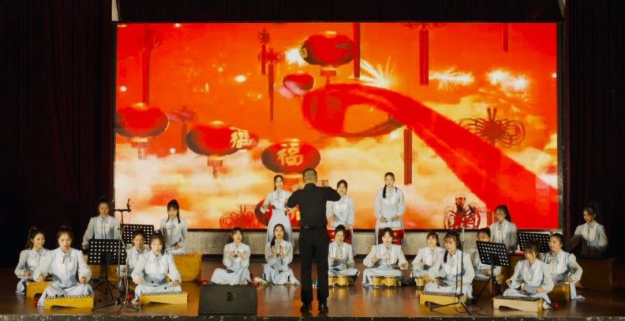 此次汇报演出分为奥尔夫音乐游戏、奥尔夫器乐演奏、乐团小合唱三个篇章,节目全部由学前教育专业奥尔夫音乐乐团的学生精心排演而来,工作室指导教师承担指挥或部分演奏工作,师生同台展示奥尔夫音乐工作室开展奥尔夫音乐教学所取得的阶段性成果。汇报演出在现场展示的同时也通过直播方式向社会开放观摩,直播平台在线观看人数达到1300多人,互动活跃。