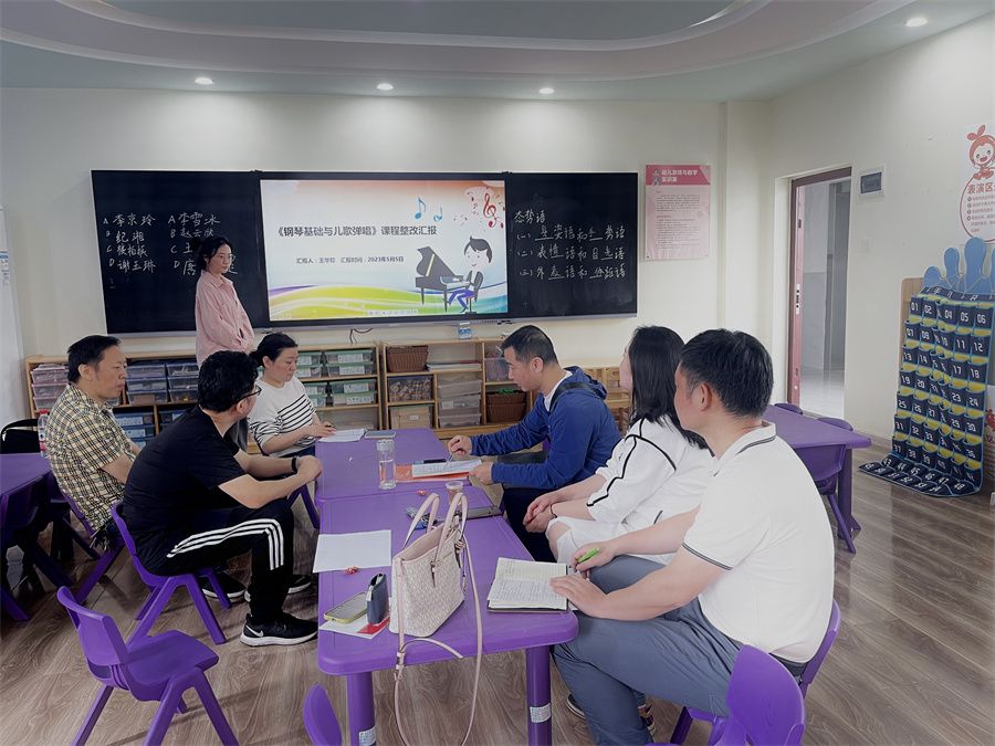 为进一步加强“课赛”对接,强化学生技能培养针对性,5月5日,beat365唯一官网钢琴课程团队在教育实训中心召开了《幼儿歌曲弹唱》课程改革研讨会,本次课程教研由课程负责人熊兵老师主持。