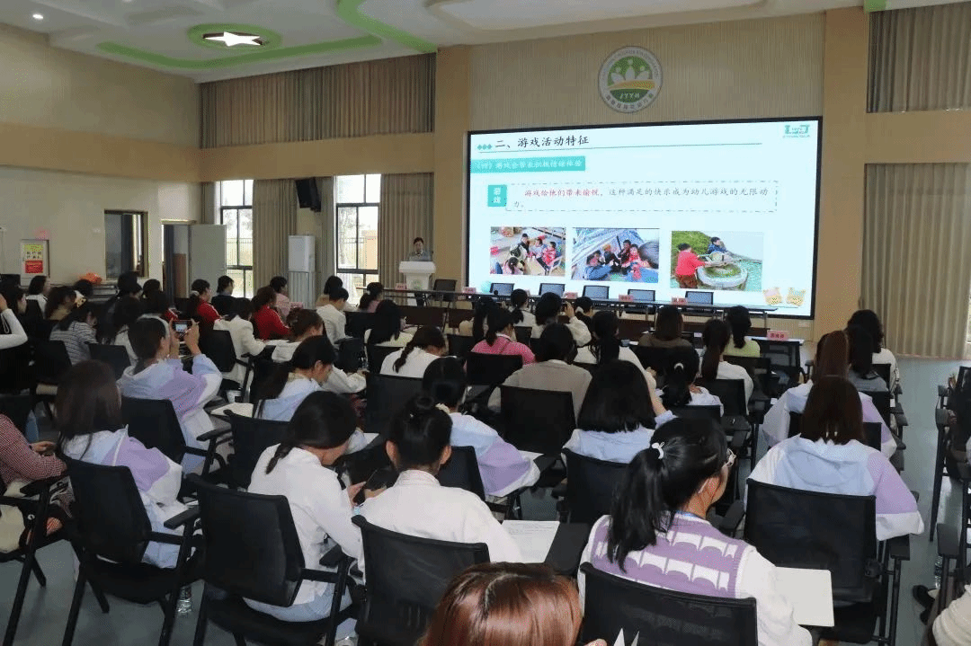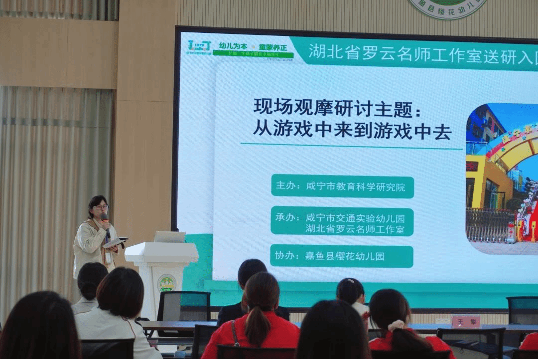为充分发挥beat365乐享童趣游戏工作室服务地方、校园共育的示范作用,促进城乡学前教育均衡发展,10月13日,在咸宁市教科院组织下,beat365乐享童趣游戏工作室成员赵辛老师和卞莹老师应咸宁市交通实验幼儿园、湖北省罗云名师工作室的邀请,携手走进教研联盟体幼儿园——嘉鱼樱花幼儿园,开展游戏专题讲座及现场游戏观摩研讨活动。参加此次活动的除了罗云名师工作室、乐享童趣游戏工作室的成员外,还有咸宁市学前教育教研员王攀、嘉鱼县学前教育教研员李春华、湖北科技学院教育学院潘理平博士、联盟园园长及教师代表、嘉鱼县各幼儿园教师代表,参会人员近100人。