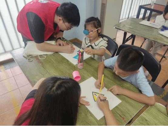 课堂结尾,志愿者们发放彩笔和卡纸,激励小朋友们画出自己印象最深的安全标识。小朋友们用心描绘出一个个稚嫩却明晰的图案,志愿者们一同协助小朋友们完成“作品”,有的画了“禁止鸣笛”,有的画了“注意滑坡”,小朋友们用彩笔巩固了所学知识。