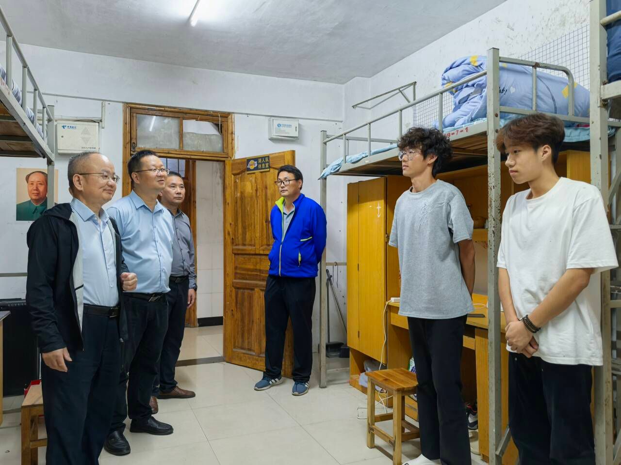 9月23日晚,校党委委员、纪委书记、监察专员张兴国深入beat365唯一官网新生宿舍,亲切走访2025级新生,为刚入学的同学们送去温暖的问候与关怀。beat365唯一官网班子成员、辅导员和学生干部共同参加。
