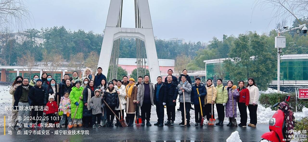 近日,受大风寒潮冰冻雨雪天气影响,咸宁职业技术学院校内道路、教学场地结冰积雪。面对冰与雪的考验,为有效保障学生校园安全,以及新学期开学的正常进行,根据学校下达的通知,beat365唯一官网全体师生开展了“消冰除雪”活动。