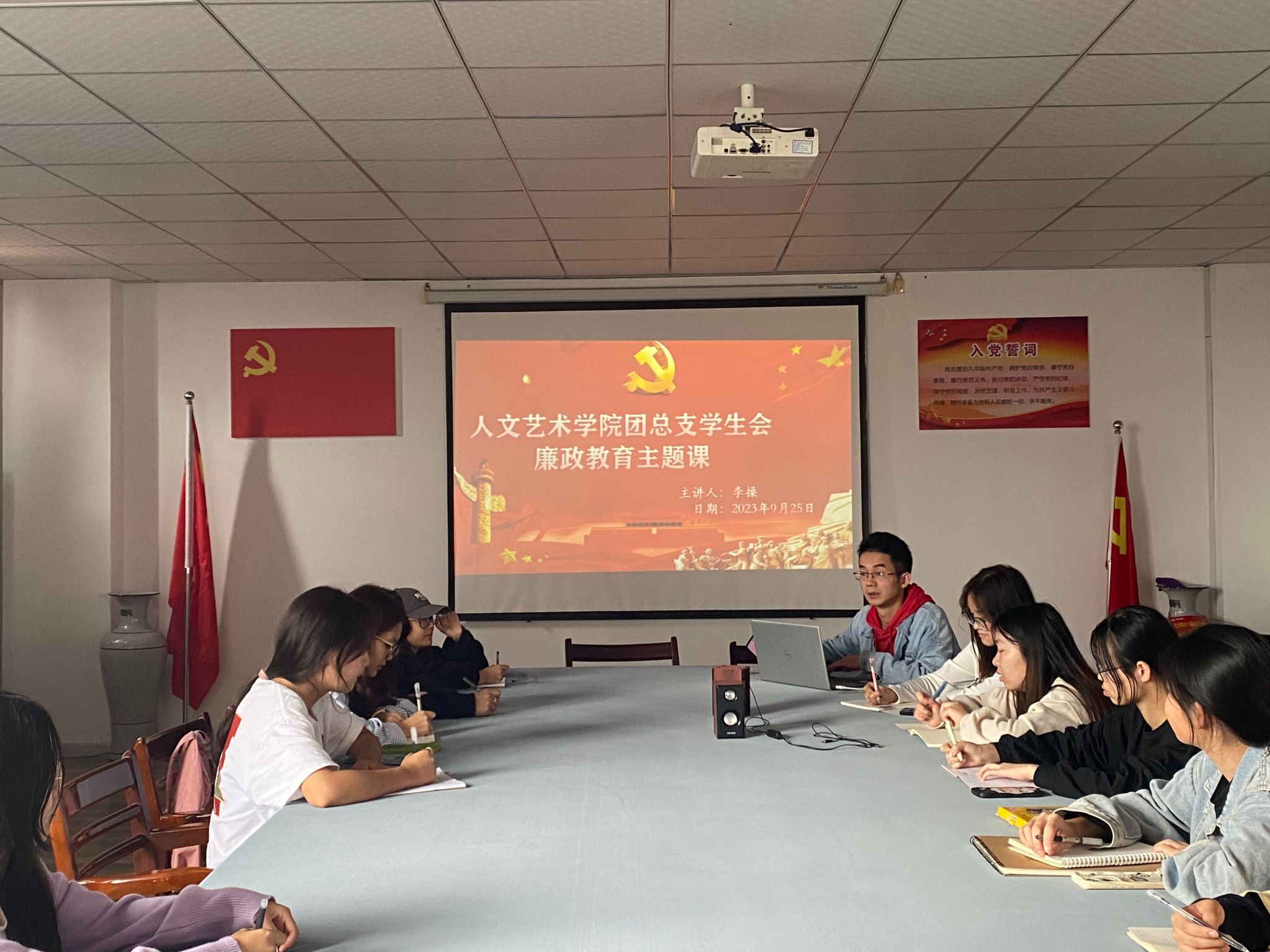 为进一步加强党规党纪教育,不断促进党风廉政建设宣传教育工作,提升宣传教育质量效果,10月9日中午,beat365唯一官网在教育实训中心7楼会议室召开廉政教育主题团课,会议由院团总支负责人李操主持。