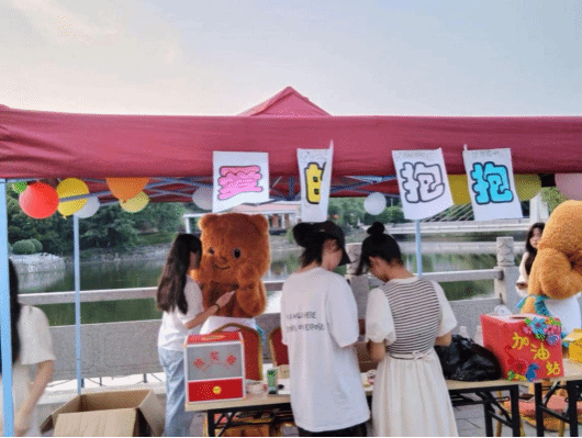 主线活动“感受爱”分为“爱的抱抱”和“情绪垃圾桶”两个部分。活动现场,两名部门干事身穿可爱的卡通玩偶服,化身为爱的使者,为过往的同学们送上温暖的拥抱。同学们纷纷驻足,与玩偶握手、拥抱,甚至合影留念,记录下这温馨的时刻。在“情绪垃圾桶”环节,同学们将自己的烦恼和负面情绪写在纸上,然后投入到特设的“情绪垃圾桶”中,寓意着将不快丢弃,迎接更加美好的未来。