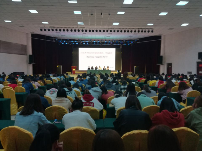 2017年10月31日,beat365唯一官网在大学生活动中心召开2015级教育实习动员大会,beat365唯一官网党总支书记卢臻、副院长余永欢、副院长余谦及学生科、实习创业科、各教育类专业教研室负责人及15级辅导员老师和小学教育专业、学前教育专业全体实习学生参加了动员会,会议由院党总支书记卢臻主持。