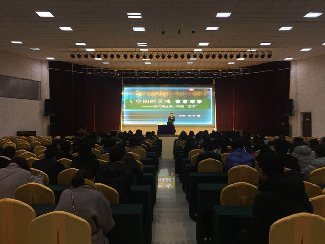 刘丹总监以“空间的灵魂----现代商业设计师的‘艺术’”为主题,通过PPT展示,围绕环境艺术设计专业的概况、市场需求以及学生毕业就业的注意事项等进行了详细介绍,重点讲解了将设计与商业有效结合的实践技巧。刘丹总监寄语即将顶岗实习的大三学生对室内设计保有一颗热忱的心并将专业付诸实践,培养对细节的敏锐度,从前辈的设计与作品中慢慢的找到适合自己风格,不断提升自我。在讲座最后的提问互动环节,刘丹总监独到而细致的回答了同学们的提问,让听众受益匪浅。