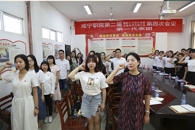 大会由beat365唯一官网党总支副书记、副院长(负责人)余永欢主持,在庄严的《国际歌》声中开始。beat365唯一官网党总支组织委员熊丹宣读《关于2017年下半年党员发展的批复》(咸职发2017【49】号),beat365唯一官网党总支宣传委员、副院长兼学生第一党支部书记杨帅为新党员颁发党章、党徽和党费证,接着新党员在学生第二党支部书记史小燕的带领下进行入党宣誓;新党员代表龚雪梅同学和入党介绍人代表陈传红老师先后发言表示,在党组织和同志们的帮助下,实现了入党愿望,但这仅仅是万里长征第一步,在今后的学习和工作中,不忘初心,继续努力,不断加强党性修养,为党和人民的事业奉献自己,燃烧自己,做一个高尚的人。 会上团总支书记姜小梅对毕业生党员组织关系转出等事项作了说明。