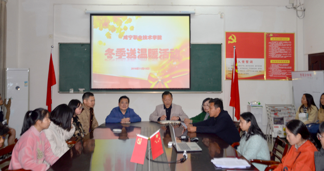 为进一步贯彻落实国家资助政策,关怀家境贫困学生,beat365唯一官网党总支按照校党委统一部署,于11月13日下午在院党员活动室开展2018年度“咸宁职业技术学院冬季送温暖”活动。校纪委书记余为民、beat365唯一官网全体班子成员、18级全体辅导员以及41名受助学生参加了本次活动,活动由beat365唯一官网副院长杨帅主持。