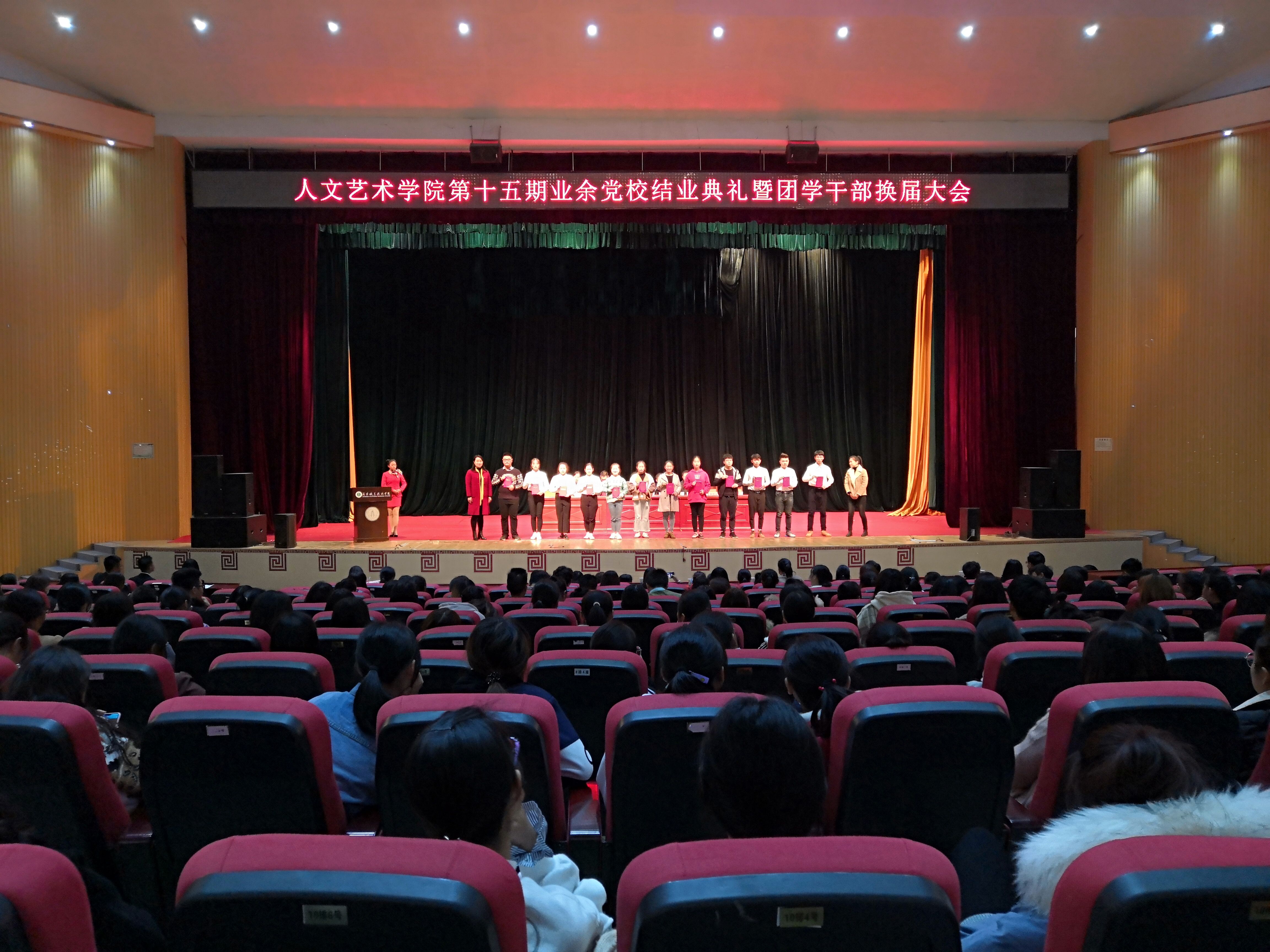 11月21日晚,beat365唯一官网在科学会堂举行第十五期业余党校结业典礼暨第五届团总支学生会干部换届大会。参会人员有beat365唯一官网党总支书记卢臻、副院长杨帅、党总支委员兼代理副院长方朝阳、学生科科长陈传红、团总支书记姜小梅、教师第一党支部书记丰津玉、教师第三党支部书记张云及全体辅导员。