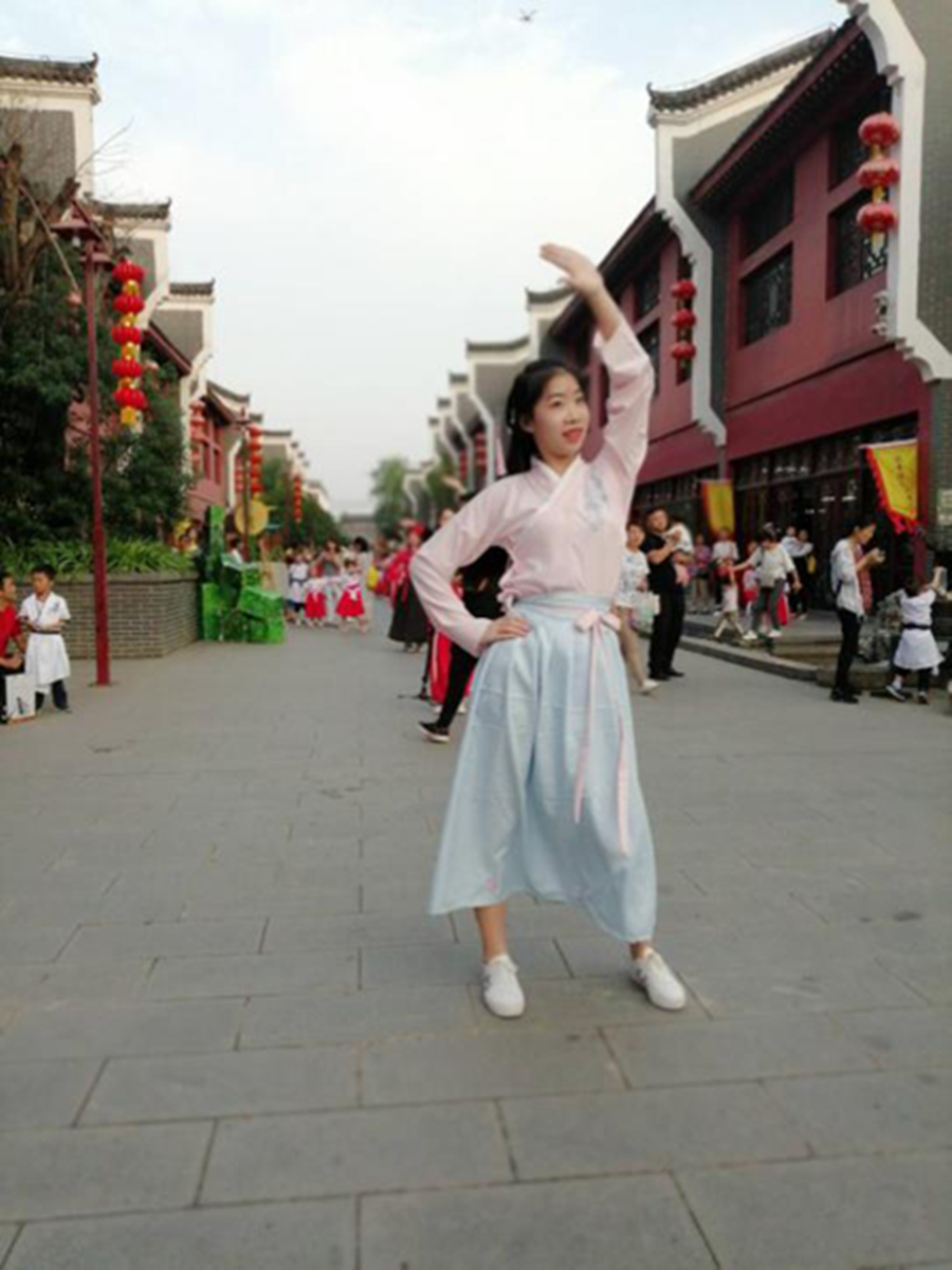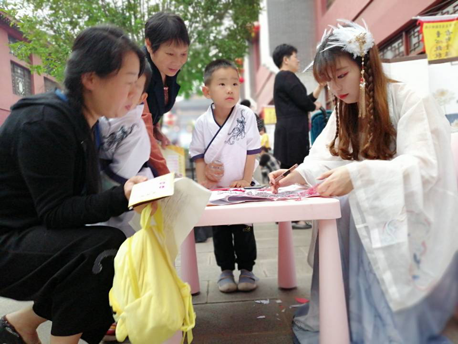 本次系列活动的主题是“古街重温老传统,童心致敬旧时光”,活动中,学前教育专业的老师和学生们与交通实验幼儿园的小朋友们一道身着汉服,文静儒雅,仿佛穿越到了汉代,古装、古玩构成了香城古街里一道美丽的风景线。学前教育专业教师王华珍演奏的古筝激发了很多小朋友和家长对古筝的兴趣,17级学前三班肖高洁同学吹奏的长笛吸引了很多小朋友和家长驻足,17级学前六班夏小玉同学做的纸雕作品惟妙惟肖,让孩子和家长们流连忘返,15五年一贯制的艾水芳、孟文丽和17学前四班的吴渝等十六位同学身着汉服在香城大舞台上跳的《生僻字》舞蹈更是赢得家长和孩子们掌声一片……