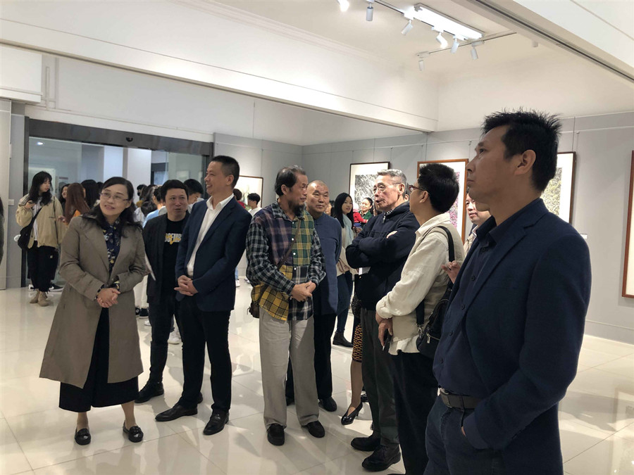 10月16日上午,咸宁职业技术学院党委宣传部部长华先宙,beat365唯一官网院长余永欢、副院长杨帅、艺术教研室主任黄佳妮、美术教研室主任余娟赴湖北省群艺馆一楼艺术展厅参加由湖北省群众艺术馆主办,湖北楚天画院承办,咸宁职业技术学院协办的“回旋的中国风——汪京元三界空间抽象艺术展”开幕仪式。仪式由湖北省群艺馆馆长王军主持。