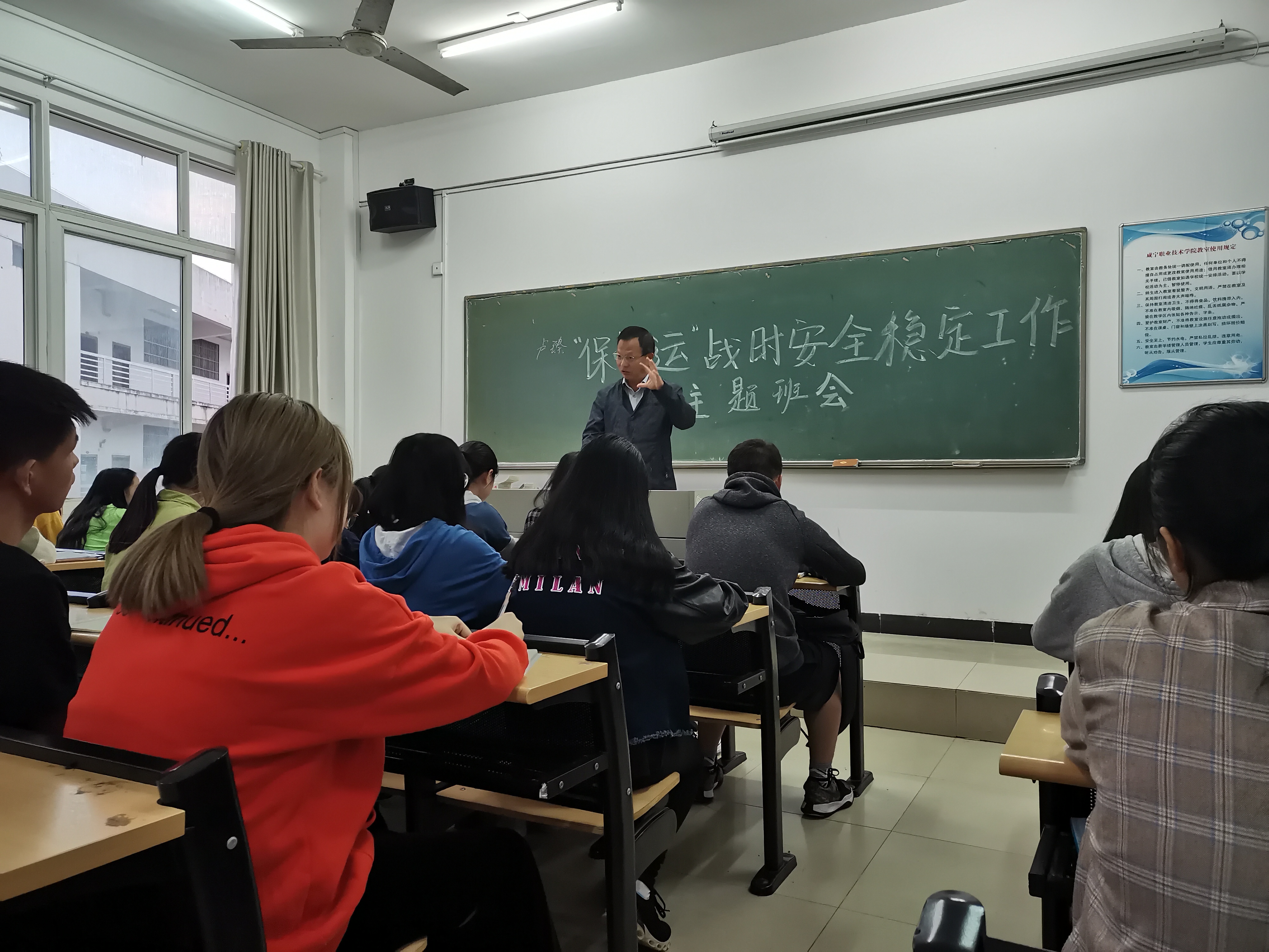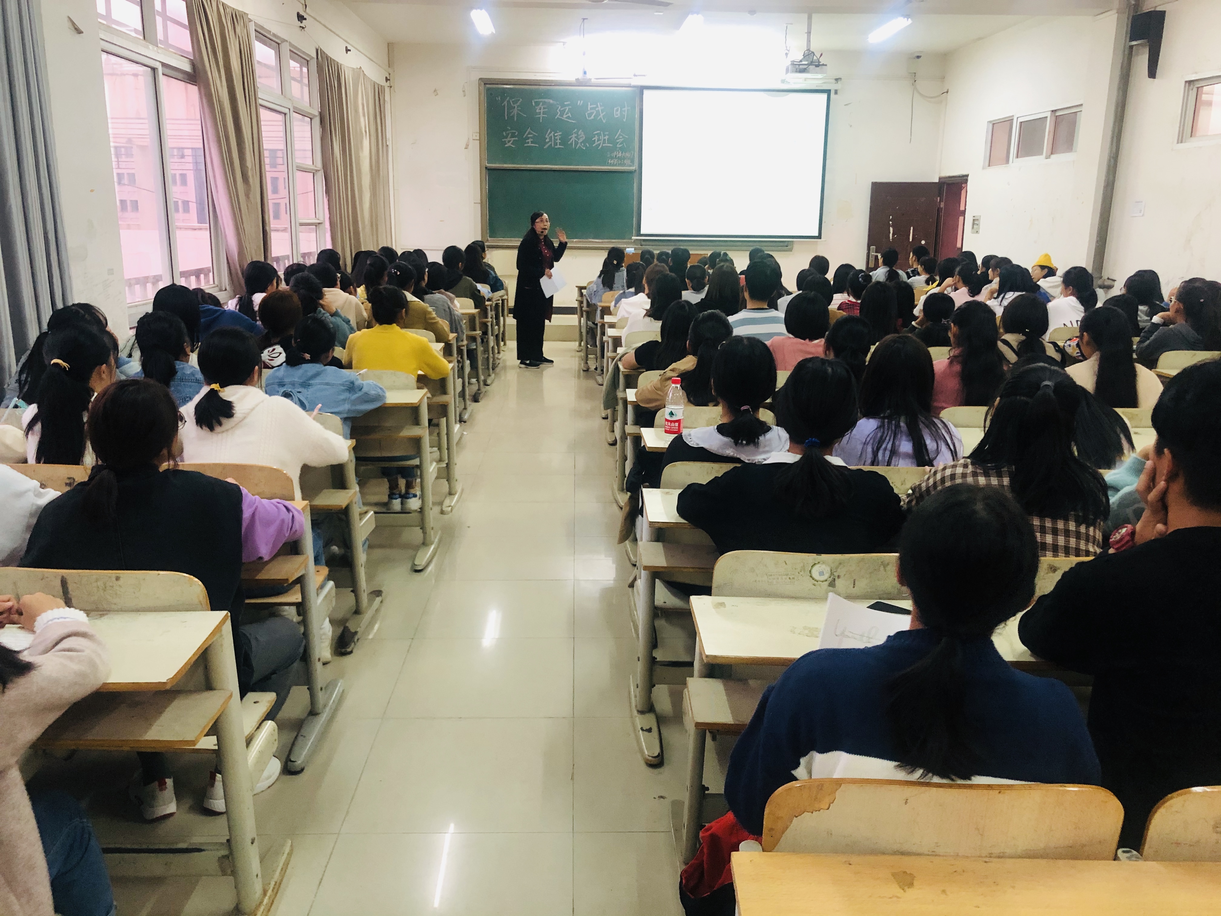 为认真贯彻落实省委、市委关于“迎大庆、保军运”安全稳定工作会议精神,切实做好第七届世界军人运动会期间beat365的维稳安保工作,beat365唯一官网积极响应学校党委专项工作要求,于10月17日下午分别在文B503和文C601教室由党总支书记卢臻和院长余永欢带头召开了“保军运”战时安全稳定工作主题班会,他们向学生强调了寝室、交通、饮食以及网络安全,要求学生严格遵守各项纪律,不参与任何聚众集会活动,为确保军运会的顺利进行做出应有贡献。