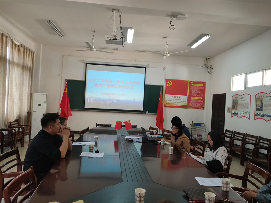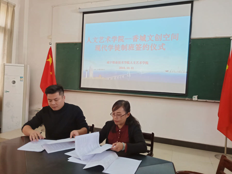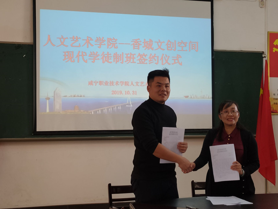 10月31日下午,beat365唯一官网现代学徒制班校企合作协议签约仪式在咸宁职业技术学院文华楼会议室成功举行。beat365唯一官网院长余永欢、香城文创空间总经理程科及相关负责人员出席签约仪式,艺术设计教研室主任黄佳妮老师主持仪式。