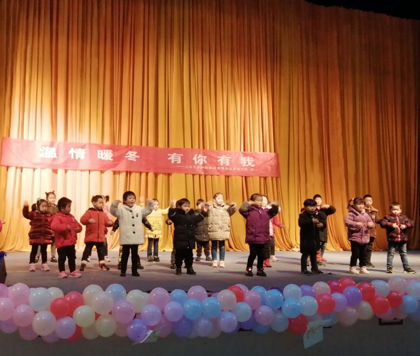 活动开始前,咸宁市艺萌康中心李红艳老师上台致辞,她表示,因为爱使我们相聚在此,因为守护爱,我们彼此温暖。温情暖冬,2020,有你有我。节目一个接着一个,笑声一波推着一波。小朋友们在老师的引导下,纷纷上台表演各具特点的节目。歌曲《祖国祖国,我们爱您》,软糯的歌声与灿烂的笑容感染了在场的每一个人。志愿者们也为小朋友们准备了节目,舞蹈《种太阳》、《和彩虹有个约定》,欢快的音乐和整齐的舞姿相互配合,获得了小朋友们的掌声。手语歌曲《我们没有什么不同》,传达了志愿者们对小朋友们浓厚的爱。最后,志愿者们为每个小朋友准备了暖心的新年礼物,一个精美可爱小书包。收到礼物的小朋友们欢呼雀跃,笑脸盈盈。即便是在寒冷的冬天,志愿者们的爱永远不会缺席。