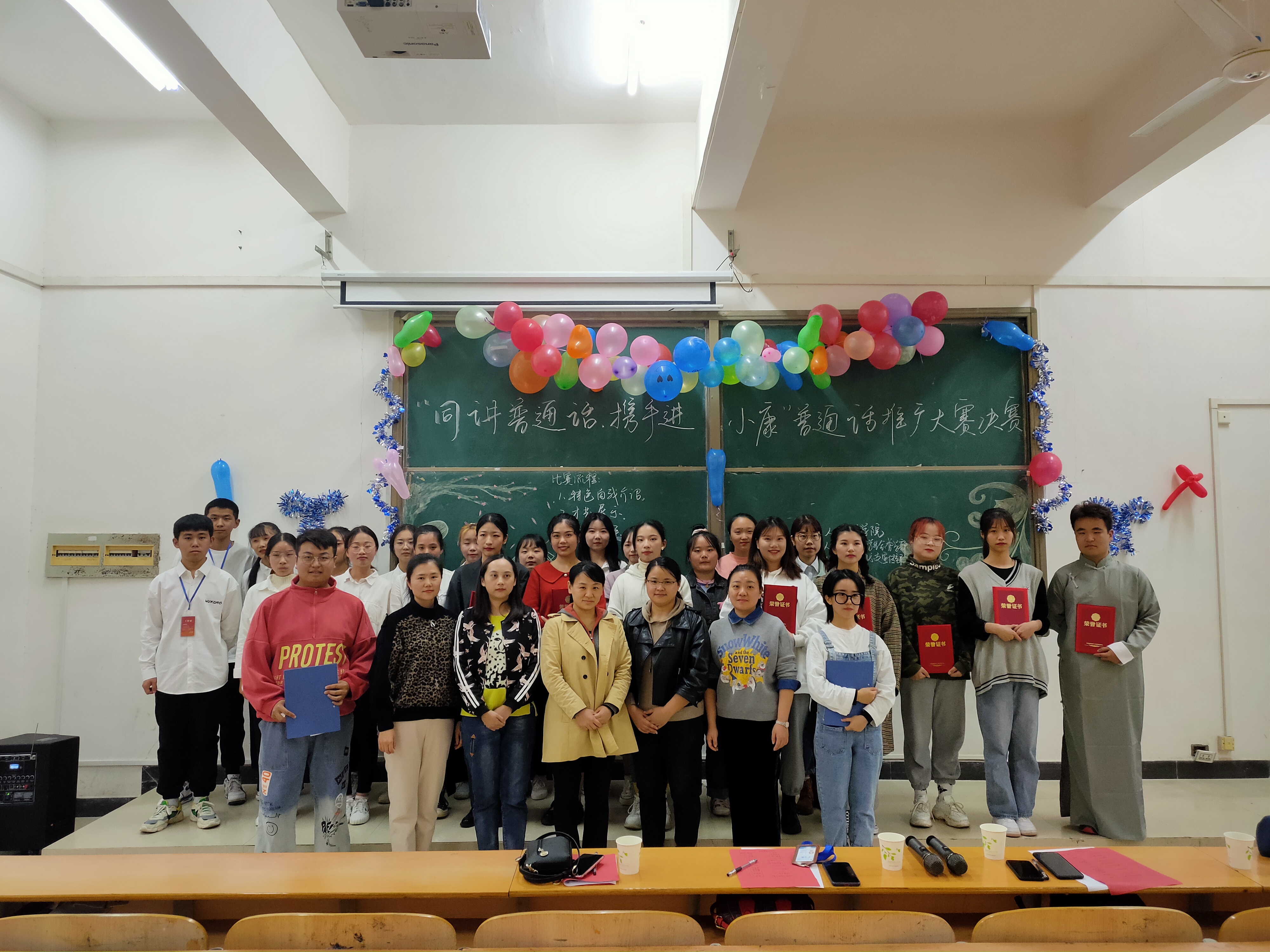 beat365唯一官网联合学校语委办主办的“同讲普通话,携手进小康”普通话大赛通过全院班级初赛,半决赛,最后选出21组选手进入决赛。