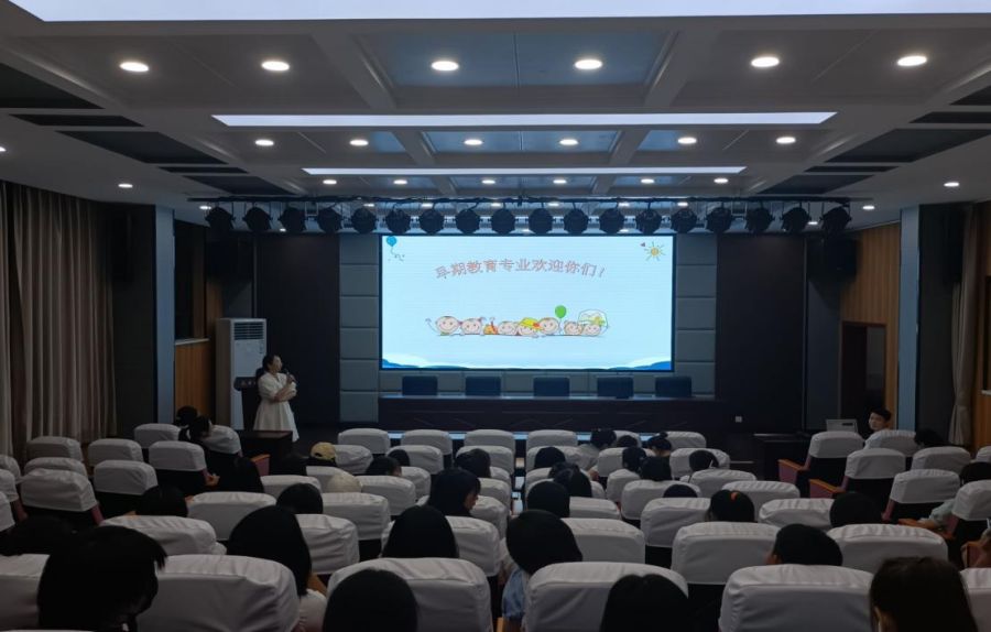 朱珊对早期教育课程设置、师资队伍情况、技能学习等方面进行了详细介绍,勉励各位同学在课程学习中能够“伸开双手,迈开大腿”,认真跟随专业老师指导,磨炼专业技艺技能,为今后走上职业岗位打下坚实基础。余娟从早期教育专业培养计划、专业实训设施条件、未来就业方向等方面进行了阐述和讲解。结合社会对这一领域人才的需求,余娟对早期教育的同学们寄予了殷切期望,希望同学们能在学院领导和老师的关怀呵护下,努力锻造自己的专业技能水平,迈向更美好的未来。讲座最后,在袁晶晶带领下,全体新生起立共读师范生誓词,在激昂澎湃的集体宣誓中,2021级新生入学教育典礼结束。