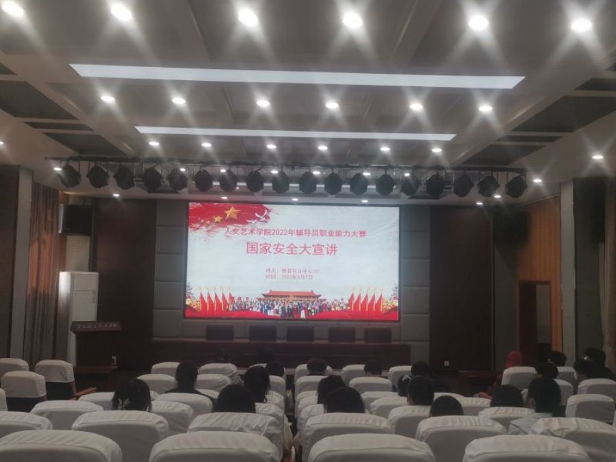 为深入贯彻落实全国高校思想政治工作会议精神、总体国家安全观,加强师生国家安全教育,增强全民国家安全意识,并且提升辅导员的专业技能和业务素质,3月7日晚,beat365唯一官网2022年辅导员职业能力大赛暨“开学第一课”国家安全大宣讲比赛在教育实训中心201报告厅举行,学院党务负责人韩飞,院长余永欢,副院长方朝阳、杨帅及学生科科长陈传红出席并担任评委。
