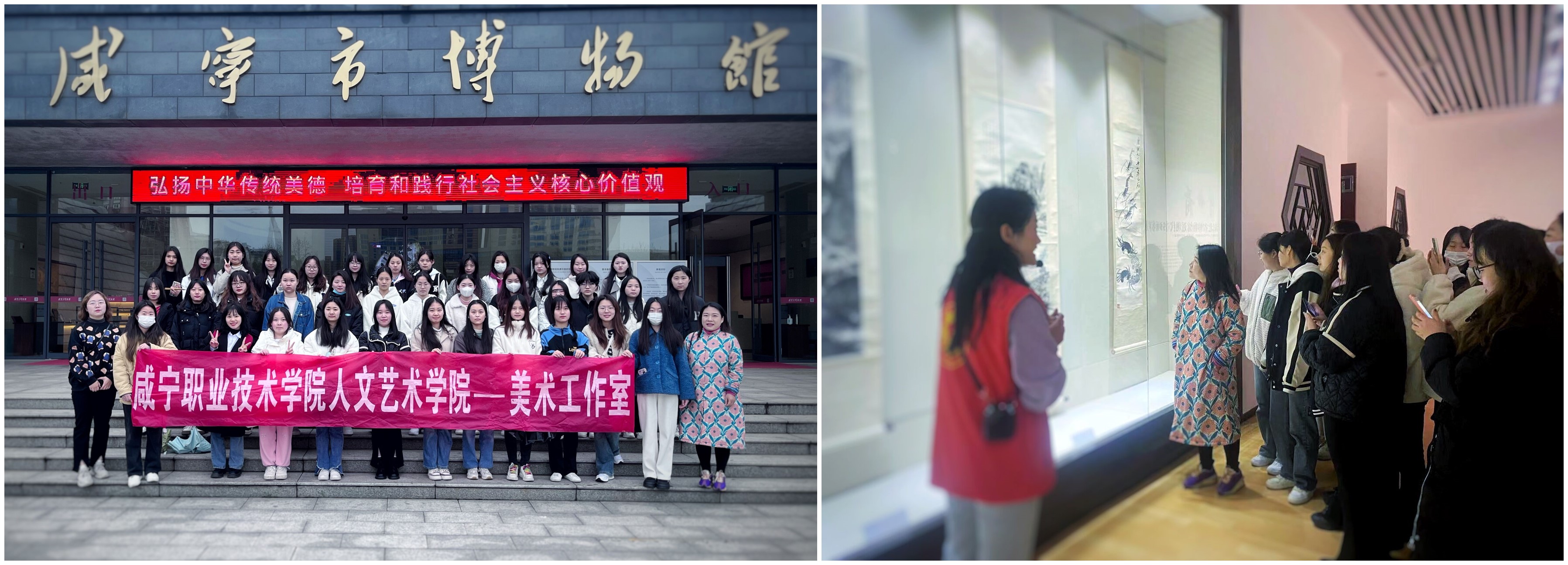为了深入实施美育浸润计划,3月20日,beat365唯一官网美术工作室余娟、刘佳欢教师带领21级学前教育学生前往咸宁市博物馆参加“水墨雅韵 手绘文明”之“百万学生走进博物馆计划”的创意美术活动。