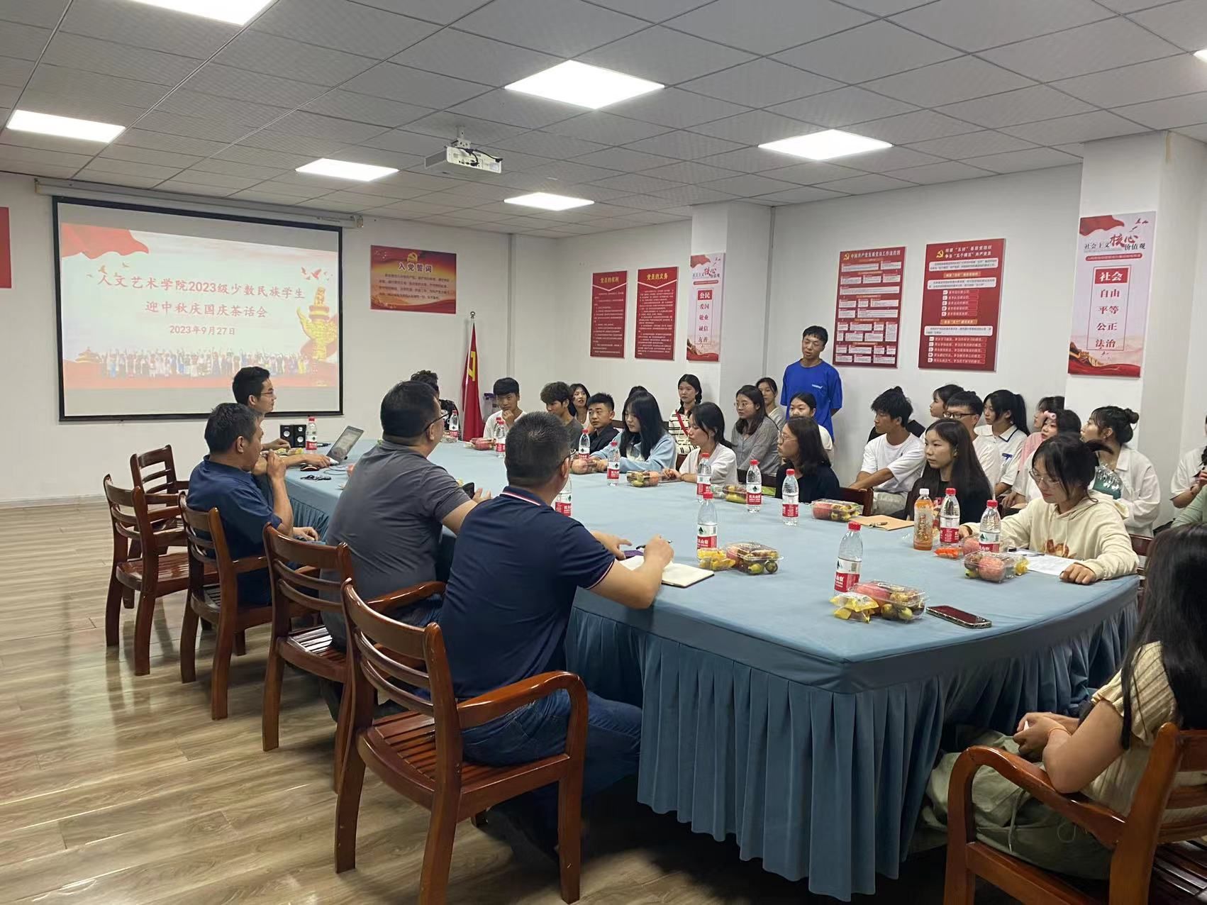为学习宣传贯彻党的二十大精神,铸牢中华民族共同体意识,深入了解少数民族学生在beat365学习、生活情况,9月27日下午,beat365唯一官网在教育实训中心7楼会议室举办少数民族学生“迎中秋庆国庆”茶话会。院党总支书记韩飞、副书记杨帅、学生科科长陈传红、团总支负责人李操出席会议,来自苗族、藏族、蒙古族等少数民族学生代表及部分学生干部共计50余人参加了本次活动。