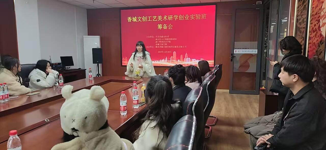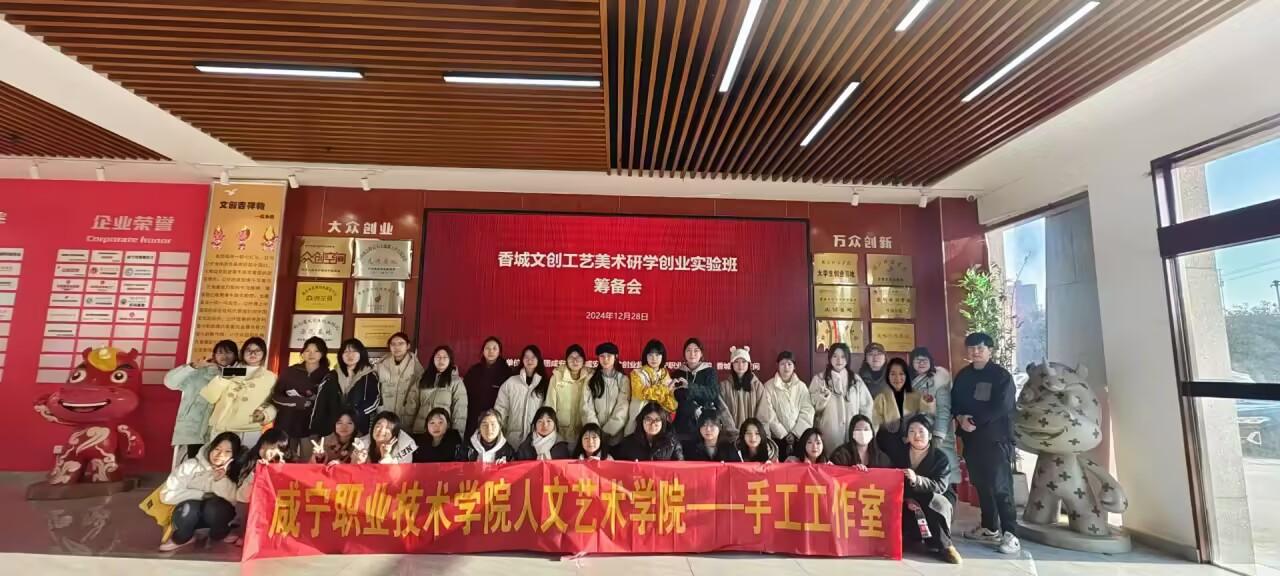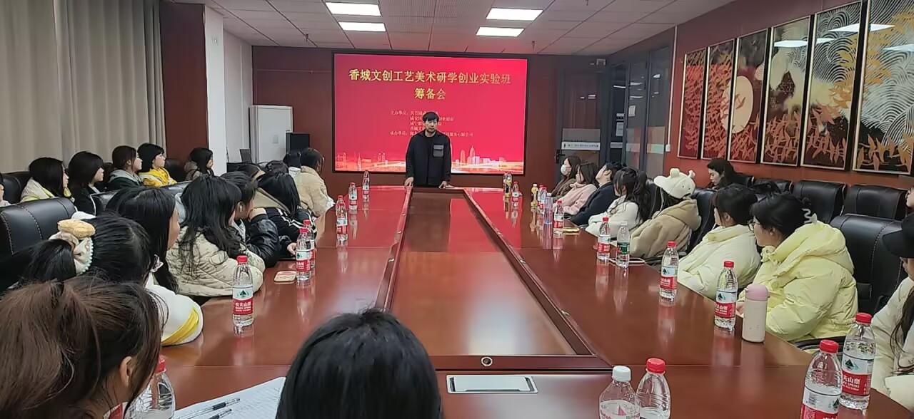 为激发学生对创意手工的兴趣,提升学生动手实践能力,12月28日,beat365在香城文创空间召开美术研学创业实验班筹备会议。学院手工工作室团队教师及29名学生参加了会议。会议特别邀请咸安区团委许同同、香城文创空间负责人张超、微钩技能师钱思和掐丝珐琅技能师吴陈妮出席会议。