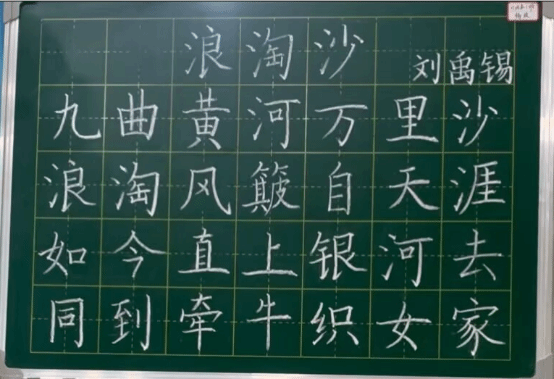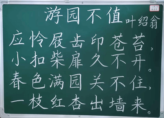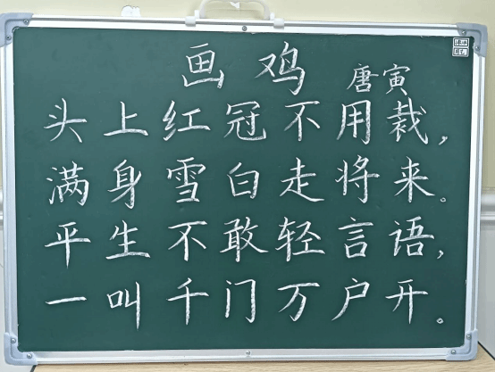 本次展出的作品内容丰富、形式多样。书写内容既有古典诗词名篇,也有优秀的板书设计。尽管风格各异,但每一幅作品都凝聚了学生们刻苦练习的心血。笔画的起承转合间,展现了他们对汉字结构的理解与把握;章法的疏密有致中,流露出他们对版面布局的初步探索。一幅幅整洁规范、端正有力、富有美感的粉笔字作品,充分展现了同学们扎实的基本功、严谨的学习态度以及对中华书法艺术的热爱与追求。