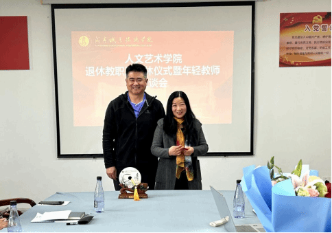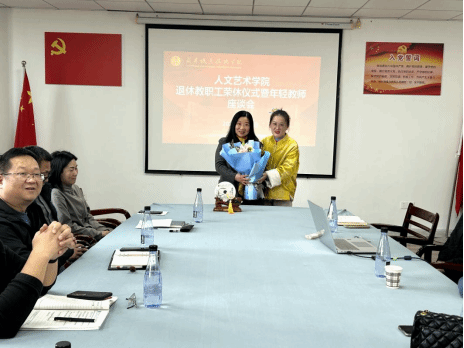最后,年轻教师为刘银燕献上鲜花,雷强详细介绍了学校退休人员福利政策,熊鑫为刘银燕老师送上精心准备的荣休纪念品。